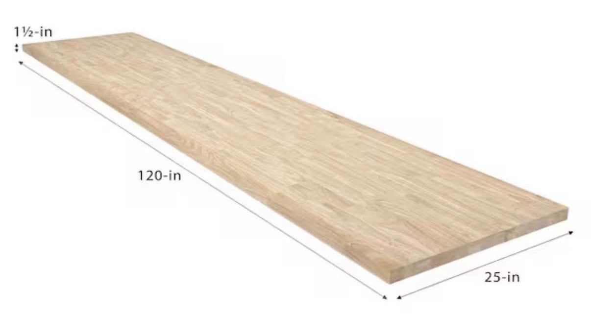 “ONLY PICK UP “ HARDWOOD REFLECTIONS 10 ft. L x 25 in. D Unfinished Hevea Solid Wood Butcher Block Countertop with Square Edge