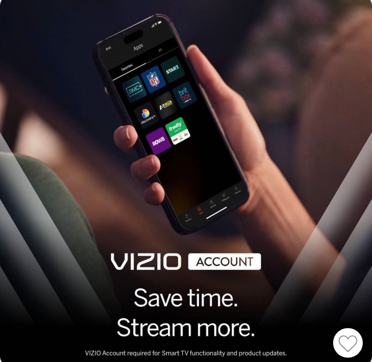 - With VIZIO Account, access VIZIO OS with apps built right in, manage your app subscriptions, watch free channels, and much more. A VIZIO Account is required for Smart TV functionality and product updates.