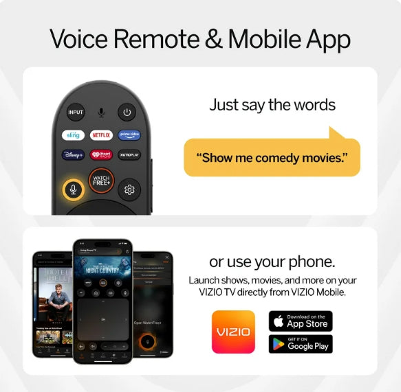 - Give a voice to your commands - Browse your favorite apps and easily search and discover content with one click from your home screen. Even easier? Just say the words and the included VIZIO Voice Remote and free mobile app will do the work.